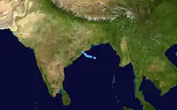 1. ^ "Frequently Asked Questions: What is the annual frequency of Cyclones over the Indian Seas? What is its intra-annual variation?". India Meteorological Department. 2012. Archived from the original on May 21, 2015. Retrieved June 8, 2012.