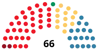 The PSOE had initially obtained 34 seats, the absolute majority, but a new count in Zaragoza following a number of claims resulted in the PSOE's 17th seat in the constituency being awarded to the People's Coalition by few votes.[3][4] As a result of the election, PSOE candidate Santiago Marraco was elected by the Cortes as new president of the General Deputation of Aragon.[5][6] The election remains the only occasion to date in which a party has obtained 50% or more of seats on its own in an Aragonese regional election.
