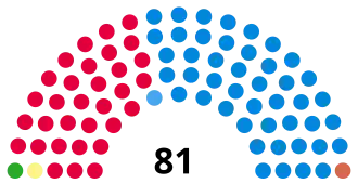 | Party | Votes won | % of vote | Loss/Gain | Seats | % of seats | Loss/Gain | |