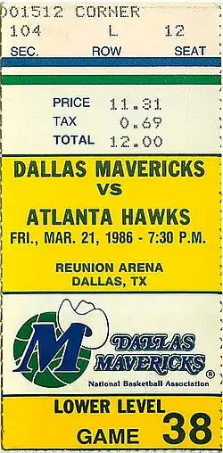 A ticket for a March 1986 game between the Atlanta Hawks and the Dallas Mavericks.