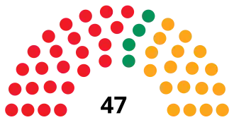 Last election 23 seats, 46.7% 21 seats, 40.9%[a] 0 seats, 3.0%