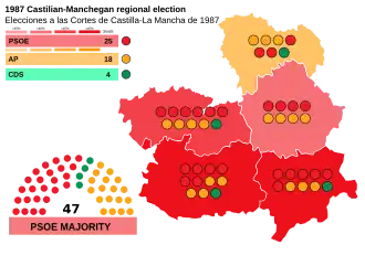 7. ^ a b "II Legislature. Regional election, 10 June 1987". www.cortesclm.es (in Spanish). Cortes of Castilla–La Mancha. Retrieved 29 September 2017.