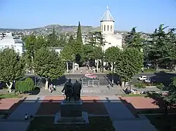 The morning of 22 December, according to the witness testimony of former deputy Sandro Bregadze, Sigua orders his personal guard, led by former Soviet secret service officer Murtaz Shaluahsvili, to position itself in Alexandrov Park (today known as the April 9 Park), in order to target the Parliament.[66] With just the Kashveti Church serving as a buffer between both camps, government authorities send Mayor Tamaz Vashadze of Tbilisi and deputy Avtandil Rtskhiladze on a negotiation mission one last time before the beginning of the hostilities, but the two are kidnapped by Sigua's forces.[53]