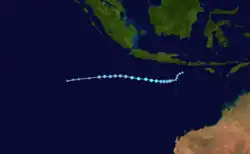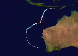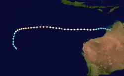 Cyclone Oscar was a weak system, and only barely reached cyclone strength on 3 January 1994 for about a 12-hour period. It moved on a generally west-southwest course parallel to the Kimberley and Pilbara coasts.[2]