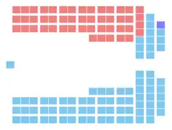 Last election 77 seats, 44.75% 47 seats, 44.40% 1 seat, 6.46%