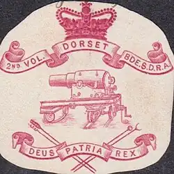 The enthusiasm for the Volunteer movement, following an invasion scare in 1859, saw the creation of many Rifle and Artillery Volunteer Corps composed of part-time soldiers eager to supplement the Regular British Army in time of need.[1][2][3] Four Artillery Volunteer Corps (AVCs) were quickly formed in Dorsetshire:[4][5][6][7]