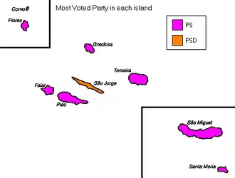 For a second term, the Socialist Party won the regional election in Azores, increasing its share of the vote from 30% to 49%, and re-electing Carlos César to the presidency of the Regional Government. Many of the Social Democrat's mandates were lost, while César and his teram obtained an absolute majority with 30 of the assembly's 52 seats.