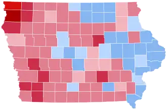 | Iowa | 3,230 | 43.57% | 3,894 | 52.53% | 289 | 3.90% | -664 | -8.96% | 7,413 |