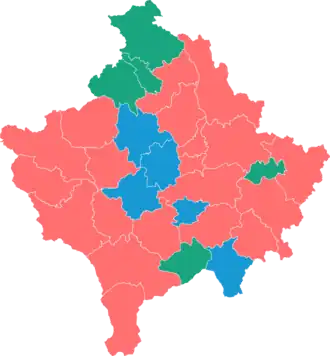 This lists parties that won seats. See the complete results below.  Most voted-for party by municipality LDK PDK Coalition Return |