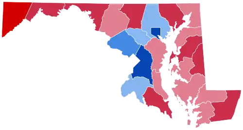 | Baltimore City | 175,022 | 81.95% | 36,230 | 16.96% | 2,311 | 1.09% | 138,792 | 64.99% | 213,563 |