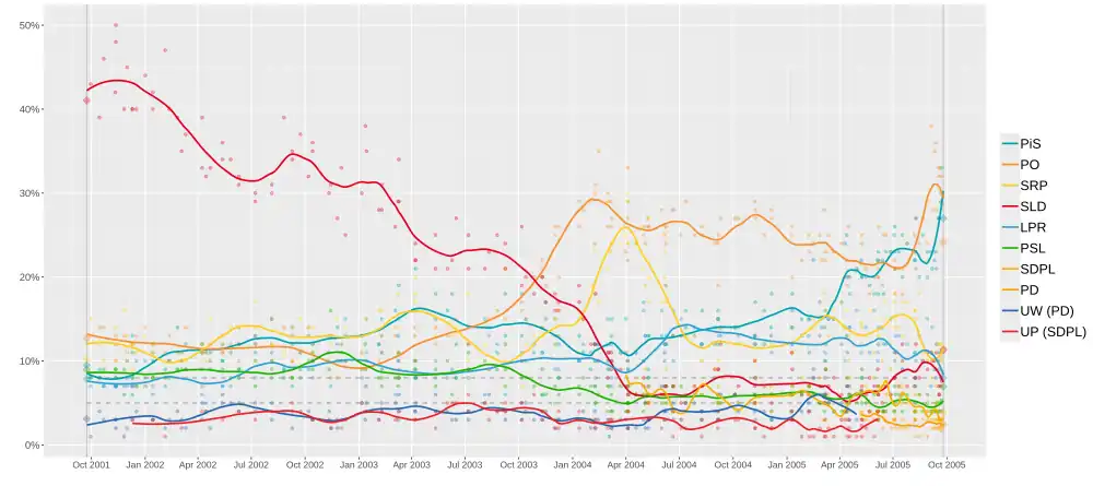 The parties running in this election were mainly the same as in 2001, with the addition of Social Democracy of Poland (a splinter group from the Democratic Left Alliance), and the Democratic Party formed from the Freedom Union (UW) and some SLD dissidents. Both these new parties failed to win seats.