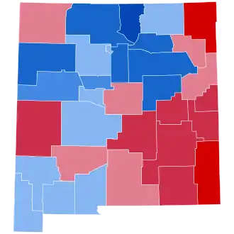 In 2008, Obama carried the state by a 15-point margin, largely by dominating the Albuquerque area. It was his strongest performance in a state which had voted for Bush in the previous election. He won Bernalillo County, home to Albuquerque itself, by 21 points; Kerry had won it by four points in 2004. While McCain dominated the southeastern part of the state, it was not nearly enough to overcome Obama's edge in the Albuquerque area.[23] As of the 2024 presidential election, this is the last election in which Luna County voted for the Democratic candidate.