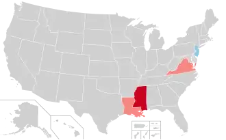 - ^ Republicans took control of the Mississippi State Senate, the Louisiana House of Representatives, and the Louisiana State Senate through party switching and special elections earlier in the year.