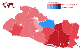 - ^ a b c d Antonio Merala. "Data Research: Sánchez Cerén 29.2%, Saca 27.8%, Quijano 27.4%". La Página (in Spanish). Archived from the original on 23 August 2013. Retrieved 11 July 2022.