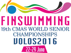 The 19th Finswimming World Championships was held in Volos, Greece at the Swimming Pool Neas Ionias “Vasilis Polymeros” from 24 to 28 July 2016.[1]