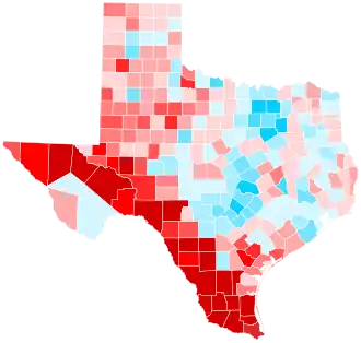 Voter turnout in the state increased to its highest level since 1992, when two Texans, George H. W. Bush and Ross Perot, were on the ballot, and the last time Texas was considered to be a battleground state.[5]