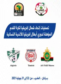 The 2021 CAF Women's Champions League UNAF Qualifiers is the 1st edition of the UNAF women's club football qualifier tournament organised by the UNAF for the women's clubs of association nations. This edition was held from 24 to 30 July 2021 in Berkane, Morocco. The winners of the tournament qualified for the 2021 CAF Women's Champions League final tournament held in Egypt.[1] The tournament was won by AS FAR of Morocco.[2][3]