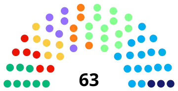 The 63 members of the Althing were elected by open list proportional representation in six multi-member constituencies, with 54 seats distributed between parties at the constituency level with no electoral threshold and 9 leveling seats assigned to party lists at the national level with a threshold of 5 percent required in order to ensure proportionality with the election result.[25] The 54 constituency seats were distributed within each constituency according to the D'Hondt method.[26] Election lists were determined by parties. Voters had the option of marking preferential votes for particular candidates of the party they vote for, which can result in the order of the candidates being altered.[25][27]
