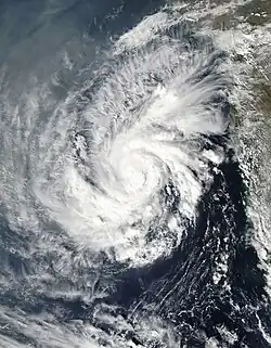 On 14 December, the remnants of Cyclone Mandous regenerated into a depression in the Arabian Sea, and it was called ARB 03.[131] The Joint Typhoon Warning Center dubbed it as Invest 97A. Although forecasted to quickly degenerate into a remnant low, ARB 03 intensified into a Deep Depression, according to the Indian Meteorological Department,[132] and the JTWC dubbed it as Cyclone 07A. After reaching peak intensity, the Low-Level Circulation detached from the associated convection as dry air and wind shear increased, starting a weakening trend. It weakened into a low pressure area on 12:00 UTC of 17 December.