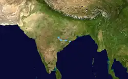 A monsoonal low spawned over the northwestern region of Bay of Bengal, off the West Bengal and Odisha coast on midday of 6 August, which later concentrated into a well-marked low pressure area on the next day.[60] By 9 August, it concentrated into a depression, after moving over coastal Odisha due to the incoming monsoonal trade winds.[61] It managed to maintain its intensity overland, until at 00:00 UTC (05:30 IST) of 10 August, it was downgraded to a remnant low over Chhattisgarh and adjoining east Madhya Pradesh.[62]