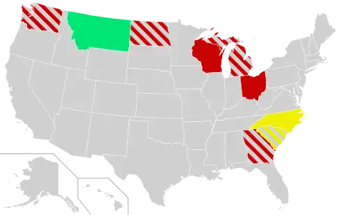 The Wisconsin Supreme Court flipped from a conservative to a liberal majority in 2023, directly leading to the overturning of the state's legislative districts in Clarke v. Wisconsin Elections Commission.[10] The legislature then passed new maps drawn by Democratic governor Tony Evers to avoid the possibility of the courts imposing their own maps.[11] In Ohio, the state had to draw new legislative maps due to the Ohio Supreme Court repeatedly striking down maps prior to the 2022 elections. The state's seven-member politician commission unanimously passed new maps despite the commission's two Democratic members considering the maps to still be unfair.[12]
