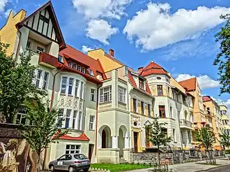 The edifice at then Goethestraße 29 has been commissioned by a master mason, Mr Weiss.[8] In the 1930s, young Zbigniew Raszewski (1925–1992), a future Polish writer and theatre historian, lived there with his family.[5]