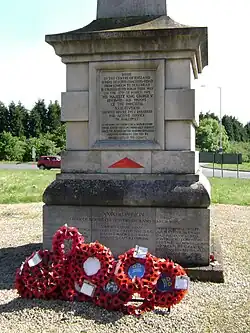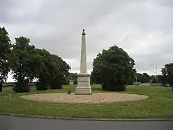 The memorial stands in circle of gravel with an avenue of lime trees. The limes were planted in the 1950s and later renewed, and replace the remains of a 6 miles (9.7 km) long avenue of elm trees to either side of the London Road (now the A45) planted in the early 18th century across Dunsmore Heath which had themselves been renewed as part of the memorial project in 1920-21 after many were blown down by a storm in 1912. Two captured field guns were displayed to either side of the memorial, but it is believed that they were removed as scrap metal during the Second World War.