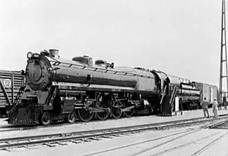 The two prototypes, #6110 and #6111, were constructed at the Baldwin Locomotive Works in April 1942. The mechanical design work had been undertaken by Baldwin's chief engineer Ralph P. Johnson, while the streamlining was the handiwork of industrial designer Raymond Loewy.[2][3] Both locomotives showed fantastic performance in test trials, leading to the construction of 50 further examples. Numbers 5500 through 5524 would be constructed at the PRR's Altoona Works while 5525 through 5549 would be constructed at Baldwin.