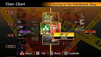 The player's role is to figure out whose actions are affecting whom, and find the right choices to lead every protagonist to the conclusions of their storylines. The game offers a time chart screen where the events of all the protagonists' stories are listed in chronological order.