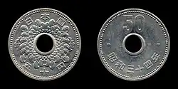 4. ^ a b c d e "Why the 50-yen coin has a hole and other fun facts about Japanese coins". Japan Today. December 1, 2013. Retrieved April 13, 2020.