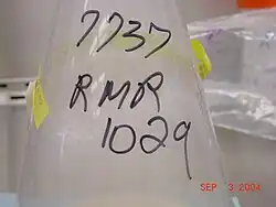 All of the material was derived from the same bacterial strain known as the Ames strain.[42] The Ames strain is a common strain isolated from a cow in Texas in 1981. The name "Ames" refers to the town of Ames, Iowa, but was mistakenly attached to this isolate in 1981 because of a mix-up about the mailing label on a package.[43][44] First researched at the United States Army Medical Research Institute of Infectious Diseases (USAMRIID), at Fort Detrick, Maryland, the Ames strain was subsequently distributed to sixteen bio-research labs within the U.S., as well as three international locations (Canada, Sweden and the United Kingdom).[45]