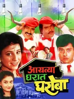 Aayatya Gharat Gharoba (translation: Habitation In A Strange House) is a 1991 Indian Marathi-language musical comedy drama film directed and produced by Sachin Pilgaonkar. The film stars an ensemble cast of Ashok Saraf, Sachin Pilgaonkar, Supriya Pilgaonkar, Laxmikant Berde, Rajeshwari Sachdev (in her debut in Marathi cinema), Prashant Damle, and Kishori Shahane. The music was composed by Arun Paudwal. The film is loosely based on 1948 Hindi film Pugree which was remade in 1972 as Dil Daulat Duniya.[1][2][3]