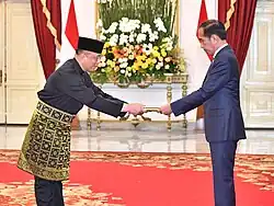 - ^ "Presiden Terima Surat Kepercayaan 10 Dubes Negara Sahabat". setkab.go.id. 8 August 2024. Retrieved 9 August 2024.