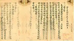 In the Tang period, other neighbouring states adopted Chinese culture and institutions, including using Chinese as the written language of administration, both to cultivate good relations with China and to strengthen their own administrations.[54] The kingdom of Balhae, established in northern Korea and eastern Manchuria in 698, followed its southern neighbour Silla in establishing a Chinese-style administration.[55] During the reign of King Mun (737–793), the state imported Chinese literary culture and institutions wholesale.[56] Similarly, the kingdom of Nanzhao to the southwest used Chinese as the language of administration and adopted Tang laws and procedures.[57] By adopting Chinese institutions, these states became stronger and more stable than their predecessors. They observed the formalities of tribute to the Tang, but functioned as independent states.[57] Almost all texts from the Dali Kingdom, which succeeded Nanzhao, are written in Chinese.[58]