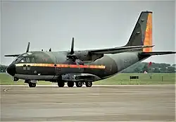 None of the submissions resulted in a production contract; however the Italian Air Force (AMI), who was at the time seeking a replacement for the Fairchild C-119 Flying Boxcar, felt that the Fiat Aviazione proposal had merit, and placed an order for two prototypes and a ground-test airframe in 1968.[6][7] The G.222 was substantially redeveloped from the NATO submission, the V/STOL lift engines having been omitted completely and the conventional Dart engines replaced by a pair of General Electric T64s;[6] the twin-boom tail featured on the V/STOL concept was also eliminated and replaced by a more conventional single tail configuration; subsequently the new aircraft had no V/STOL capability but retained considerable short take-off/landing (STOL) performance.[8]