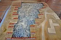 In 2005, a new roof structure, meant to protect the site, collapsed, just before its completion killing one visitor.[1][10] No damage was caused to the antiquities.[1][11] Between 2005 and April 2012, the site was closed to visitors.[1][10][12]