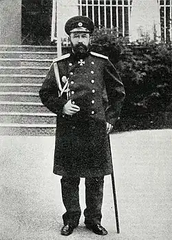 Aleksey Nikolayevich Kuropatkin (Russian: Алексе́й Никола́евич Куропа́ткин; March 29, 1848 – January 16, 1925) was a Russian politician and military officer who served as the Russian Imperial Minister of War from January 1898 to February 1904 and as a field commander subsequently. Historians often hold him responsible for major Russian defeats in the Russo-Japanese War of 1904 to 1905, most notably at the Battle of Mukden (1905) and at the Battle of Liaoyang (August–September 1904).