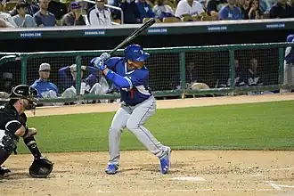 In spring training, Guerrero made it clear he intended to exercise an unusual clause in his contract allowing him to refuse an assignment to the minor leagues.[20] As it happened, he hit so well during spring training that he convinced the Dodgers he belonged on their opening day roster, despite concerns about his defense.[21]