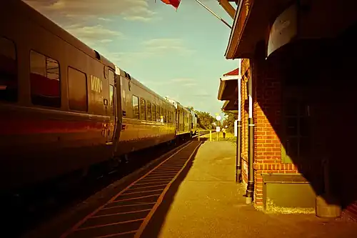 Alexandria Station is a train station in Alexandria, Ontario, Canada. Located on McDougal Street, it is an intermediate stop for all trains on the Via Rail Ottawa–Montreal line. The station is unstaffed, has a wheelchair accessible shelter and fifteen outdoor parking spaces. In 1994, it became a Designated Heritage Railway Station.[1]