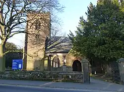 In the 12th century a chapelry was founded on the site of the present church as a daughter house of Norton Priory.[5] It was a chapel of ease within the parish of Runcorn.[6] After the Reformation the patronage of the Runcorn parish passed into the hands of Christ Church, Oxford.[5] It is likely that the stone tower was built shortly after this time. Over the years there were frequent disputes between the worshippers at Daresbury and the mother church at Runcorn relating to financial matters.[7]