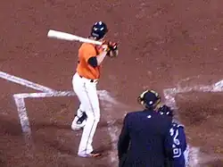 Torres signed with the San Francisco Giants on January 9, 2009.[24] After a strong spring training, he was named to the Giants' Opening Day roster as a reserve outfielder.[32][33] Except for a minor league rehab assignment, he spent the entire year in the majors. He was placed on the disabled list on April 27 with a strained left hamstring.[34] After a rehab assignment, he was activated on May 26.[35] On June, 15 he hit the 48th "Splash Hit" home run at AT&T Park, against John Lackey in a 9–7 loss to the Los Angeles Angels of Anaheim.[36] He was again placed on the disabled list on July 31 with the same injury he suffered earlier in the year; he was out until September 1.[5][37] On September 20, he hit two home runs against Randy Wolf in a 6–2 loss to the Los Angeles Dodgers.[38] He finished the year with a career high .270 batting average and tied for eighth (along with Craig Counsell, Gerardo Parra, Everth Cabrera, and Juan Pierre) in the National League (NL) with eight triples despite only playing 75 games.[5]