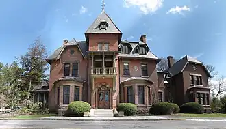 Commissioned in 1871 by Andrew Dickson White, co-founder and first president of Cornell University, the house features elaborate stone carvings reflecting White's aesthetic preferences. White intended the house to serve as both a residence and a source of artistic inspiration for students.[3] Upon his death, he bequeathed the house to the university for the use of future presidents. While no longer serving as a primary residence, the study on the southeast side remains available as a private office and retreat for university presidents.