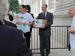 Andrew Turner (centre-right) outside Downing Street delivering the One Wight petition