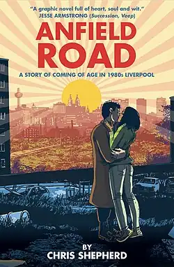 Anfield Road is a 272 page graphic novel written and illustrated by Chris Shepherd and published by Titan Comics. It was released on the 29th October 2024. set in the working-class environment of Liverpool, Merseyside, in the late 1980s.[1] It is Shepherd's debut graphic novel and took four years to draw. He began making it without a publishing deal in place.[2]
