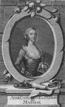 Anna Catharina Materna (née von der Lühe) (1731–1757) was a Danish actor and playwright. She belonged to the first pioneer-troupe of actors at the Royal Danish Theatre, and later became one of the first female playwrights to have her plays performed there.