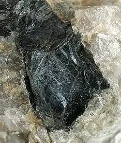 Annite was first described in 1868 for the first noted occurrence in Cape Ann, Rockport, Essex County, Massachusetts, US.[7] It also occurs on Pikes Peak, El Paso County, Colorado.[8] It occurs in igneous and metamorphic rocks that are deficient in magnesium and is associated with fluorite and zircon in the type locality.[8]