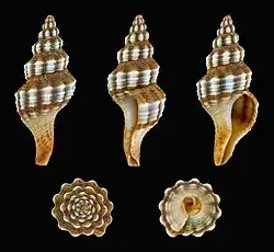 Aptyxis syracusana, common name Syracusan spindle shell, is a species of sea snail, a marine gastropod mollusc in the family Fasciolariidae, the spindle snails, the tulip snails and their allies.[2]