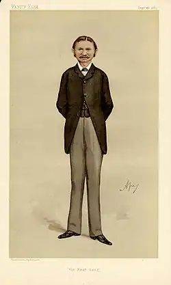 As depicted by "Ape" (Carlo Pellegrini) in Vanity Fair, 26 September 1885