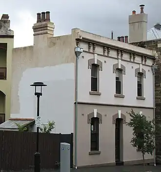On 20 November 1830, David Leighton sold a parcel of land at Millers Point to John Clarke. Leighton was the son of prominent Sydneysider John Leighton, or "Jack the Miller" who had erected several windmills in the area and had given the Point its name. Clarke paid £37 for the land which was described as being bounded on the north-west by Windmill Street, on the south-east by the road to Dawes Battery (i.e. Lower Fort Street), on the south-west by Henry McGee, and on the north-east by government land.[1]
