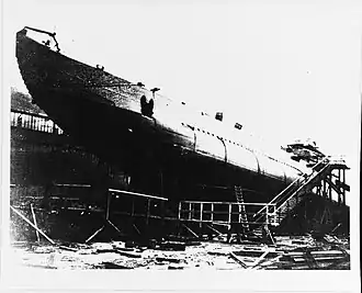 The French Navy submarine Le Conquérant under construction at Ateliers et Chantiers de Saint-Nazaire Penhoët, sometime between 1930 and 1934.